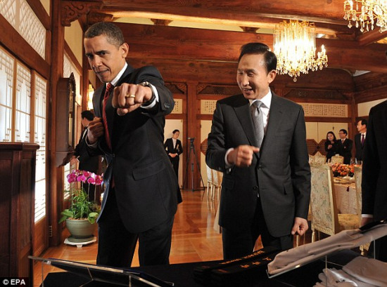據(jù)英國《每日郵報(bào)》報(bào)道,美國總統(tǒng)奧巴馬在籃球場上的颯爽英姿與舞池中的風(fēng)流倜儻已經(jīng)有目共睹,但他還有很多絕活兒能讓世人為之傾倒。借著訪問韓國的大好時(shí)機(jī),他向韓國總統(tǒng)李明博大秀跆拳道技術(shù),博得滿堂喝彩。
