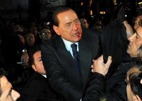據(jù)悉,就在集會(huì)快要結(jié)束時(shí)上演了貝盧斯科尼遭暴力襲擊的一幕,當(dāng)時(shí)貝盧斯科尼正在一群支持者中為他們簽名。一名男子手持一個(gè)米蘭大教堂的模型打在貝盧斯科尼的臉上。之后警方將該男子制服,貝盧斯科尼則被迅速送往醫(yī)院。醫(yī)生稱其沒(méi)有生命危險(xiǎn),只是鼻骨骨折,兩顆牙齒松動(dòng),嘴唇大量出血需要縫針。