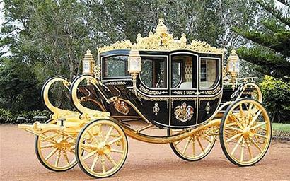 據(jù)報道,這輛奢華無比的“黃金婚車”名叫“不列顛尼婭(Brittania)”,由澳洲工匠弗萊.克林頓耗時6年打造。克林頓此前為英國女王伊麗莎白二世制造過多輛專屬馬車。這輛奢華的“黃金婚車”全車重達2.5噸,高3米,車身上裝飾有總計24顆鉆石、130顆藍寶石和超過400片金葉。車身上一百多塊木材分別取自倫敦塔、19世紀(jì)英國海軍名將納爾遜的“勝利號”戰(zhàn)艦以及16世紀(jì)亨利八世國王的“瑪麗.羅斯號”戰(zhàn)艦等重要王室建筑和文物,將是迄今為止英國最具有歷史意義的車輛之一。