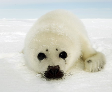 加拿大白色小海豹因其著名的雪白皮毛而慘遭人類屠殺,人類手段殘忍,捕海豹業(yè)被普京斥之為“血腥的行業(yè)”。