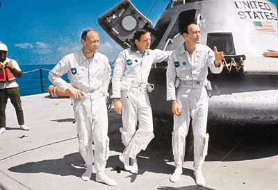 據香港《文匯報》報道,1969年7月,3名宇航員阿姆斯特朗、科林斯和奧爾德林,擠在“阿波羅11號”里展開他們歷史性的8天旅程。此次紀念登月40周年,周日3人終于有機會再一同出現在公眾面前,并在華盛頓的史密森學會國家航空航天博物館發(fā)表演講,一起談論太空歷史。這或許將是3位年屆8旬的老人,最后一次集體亮相。