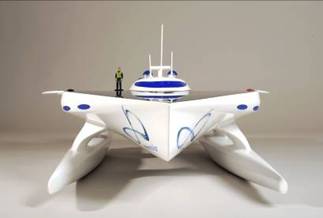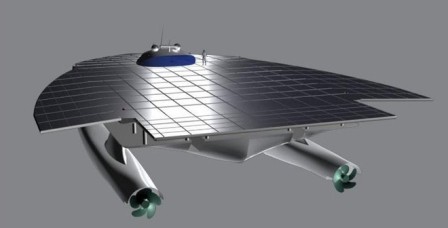 船的上方設(shè)有面積達(dá)500平方米的太陽能板,圍繞著中間凸起的駕駛艙。