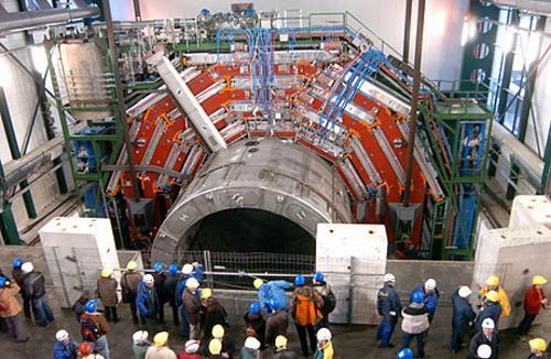 “大型強子對撞機”(Large Hadron Collider )讓以近光速行進、總能量高達7兆電子伏特的兩束質子流對撞,產(chǎn)生微小的能量爆炸,以模擬宇宙大爆炸后,瞬間產(chǎn)生及存在的狀態(tài)。