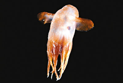 中新網(wǎng)11月24日電 由80個國家、逾2000名科學(xué)家進(jìn)行為期10年的海洋普查接近尾聲,科學(xué)家至今在深海已找到近1.8萬種海洋生物,其中包括一種章魚,長有如象耳般的一對鰭,專家為它取名“大寶”,即迪士尼卡通《小飛象》的主角。