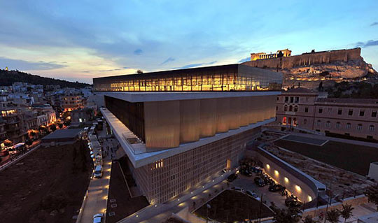 新衛(wèi)城博物館的設(shè)計考慮到如何更好地向外界展示鎮(zhèn)館之寶——巴特農(nóng)神廟外墻浮雕,新館頂層是根據(jù)雅典存留的巴特農(nóng)神殿而設(shè)計,重組雕于2500年前的大理石浮雕,目前流落大英博物館的部分浮雕則以仿制品替代。希臘政府希望借此面積大、設(shè)計新的新館,促使英國政府歸還兩塊巴特農(nóng)神廟外墻浮雕。