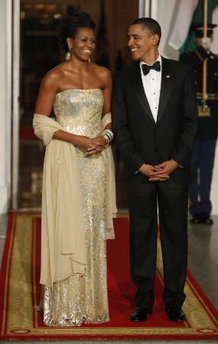 中新網(wǎng)11月25日電 據(jù)美國媒體報(bào)道,美國總統(tǒng)奧巴馬24日晚首次在白宮擺國宴款待外賓,“第一夫人”米歇爾身著華麗晚裝閃亮登場,整個(gè)國宴就像一場炫目的晚會(huì)。