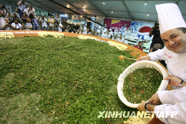 中新網(wǎng)10月27日電 黎巴嫩在組織政府方面問題多多,但在締造世界紀(jì)錄方面卻不落人后。前天,黎巴嫩廚師制作了一道重約3.175噸(3175公斤)的塔博勒沙拉(tabbouleh),創(chuàng)造了今年來的第三個吉尼斯世界紀(jì)錄。