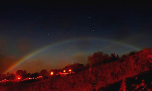 據(jù)報道,彩虹出現(xiàn)在英國北約克郡Richmond鄉(xiāng)村地區(qū),通常彩虹是雨滴折射陽光形成的景象,而此次彩虹出現(xiàn)時太陽已經(jīng)下山很久了,不過當(dāng)天有一輪圓月,為人們帶來了奇特的夜間彩虹。