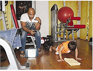 父母于是請來印度著名的私人健身教練薩特亞吉特·喬拉西亞對羅納克進(jìn)行更為專業(yè)的體能訓(xùn)練。據(jù)悉,健身教練喬拉西亞專門負(fù)責(zé)訓(xùn)練印度的名人和演員。過去2年來,羅納克每周都會前往健身房訓(xùn)練數(shù)次,在健身教練喬拉西亞的指導(dǎo)下,利用啞鈴和杠鈴?fù)瓿筛鞣N高強(qiáng)度的器械練習(xí)。最折磨人的是,每次訓(xùn)練時,健身教練喬拉西亞還會拿著一塊秒表掐算時間,督促羅納克在最短時間內(nèi)做成百上千個俯臥撐,以此增加他的體能和耐力。在跟隨健身教練喬拉西亞進(jìn)行了2年“魔鬼訓(xùn)練”后,羅納克將自己鍛煉成了一個擁有結(jié)實(shí)肌肉和驚人力量的“大力士”。日前,羅納克竟在短短40分鐘時間里,一口氣接連做了多達(dá)1500個俯臥撐,從而創(chuàng)下了一項(xiàng)新的印度全國紀(jì)錄!當(dāng)羅納克完成這一壯舉的錄像片段在網(wǎng)上曝光之后,許多人都看得目瞪口呆,無法相信自己的眼睛。