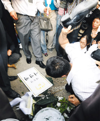 盧武鉉的支持者還在首爾德壽宮大門(mén)外設(shè)立祭奠所。為防止悼念活動(dòng)中出現(xiàn)意外,政府在那里部署了防暴警察。