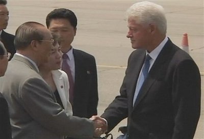 克林頓在平壤順安機場受到了朝鮮多位高官歡迎。