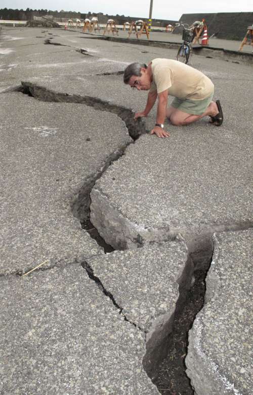 在燒津港的碼頭上,地震后出現(xiàn)了一條300米長(zhǎng)的裂痕。燒津港某漁業(yè)合作社的官員說(shuō):“這次地震和海嘯預(yù)警實(shí)在令人害怕。今天的事讓我們?yōu)檎嬲拇鬄?zāi)難進(jìn)行演習(xí)!