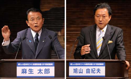 據(jù)日本共同社報(bào)道,麻生表示民主黨的政策是“沒(méi)有財(cái)源的亂花錢(qián),是不負(fù)責(zé)任。不能把日本安全交給一個(gè)在安全保障政策上沒(méi)有一貫性的政黨”,對(duì)民主黨的執(zhí)政能力質(zhì)疑。鳩山則稱“執(zhí)政黨的政策是官僚主導(dǎo)制定,把日本變成了一個(gè)官員到民間企業(yè)就職多、浪費(fèi)多的國(guó)家。這是官僚主導(dǎo)的政治打破不了的”,訴說(shuō)政權(quán)更迭的必要性。