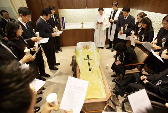下午1時30分開始在首爾西橋洞教堂主任神父尹日善(音)的主持下舉行了入殮彌撒。