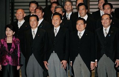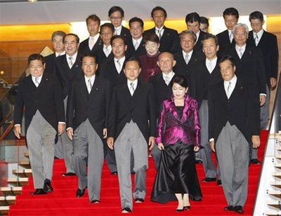中新網(wǎng)9月17日電 據(jù)香港《文匯報(bào)》報(bào)道,日本新任首相鳩山由紀(jì)夫16日公布其內(nèi)閣成員名單,分別為:金融兼郵政改革大臣─龜井靜香(72歲,國(guó)民新黨黨魁)、副首相兼國(guó)家戰(zhàn)略大臣─菅直人(62歲)、首相─鳩山由紀(jì)夫(62歲) 、少子化兼消費(fèi)者行政大臣─福島瑞穗(53歲,社民黨黨魁)、外務(wù)大臣─岡田克也(56歲)、國(guó)家公安委員長(zhǎng)─中井洽(67歲)、國(guó)土交通大臣─前原誠(chéng)司(47歲)、財(cái)務(wù)大臣─藤井裕久(77歲)、內(nèi)閣官房長(zhǎng)官─平野博文(60歲)、防衛(wèi)大臣─北澤俊美(71歲)、文部科學(xué)大臣─川端達(dá)夫(64歲)、法務(wù)大臣─千葉景子(61歲)、農(nóng)林水產(chǎn)大臣─赤松廣隆(61歲)、經(jīng)濟(jì)產(chǎn)業(yè)大臣─直山鳥 正行(63歲)、總務(wù)大臣─原口一博(50歲)、行政刷新會(huì)議大臣─仙谷由人(63歲)、環(huán)境大臣─小澤銳仁(55歲)、厚生勞動(dòng)大臣─長(zhǎng)妻昭(49歲) 。