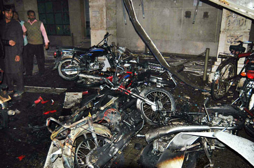 爆炸發(fā)生在拉合爾一個名為“月亮”的市場內(nèi)一所警察局外。爆炸導(dǎo)致鄰近多間商鋪和一家銀行起火,一些停在附近的車輛或被炸毀,或被引燃。爆炸還導(dǎo)致該地區(qū)電力供應(yīng)中斷。