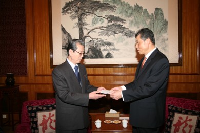 劉曉明大使首先請崔泰福轉交中共中央總書記胡錦濤致朝鮮勞動黨總書記金正日的新年賀卡。崔泰福表示感謝,并允向金正日總書記轉交。