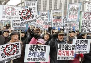 韓國(guó)上任政府為減輕首都首爾的發(fā)展壓力,致力將南面的世宗市打造成全新政治之都,平衡地區(qū)發(fā)展。然而李明博政府前年上臺(tái)后一直表明遷都將導(dǎo)致“行政效率低下”,反對(duì)遷都。