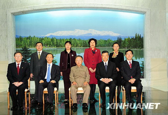 朝鮮勞動(dòng)黨總書記、國(guó)防委員會(huì)委員長(zhǎng)金正日8日在咸鏡南道咸興市會(huì)見(jiàn)了正在朝鮮進(jìn)行友好訪問(wèn)的中共中央對(duì)外聯(lián)絡(luò)部部長(zhǎng)王家瑞一行。