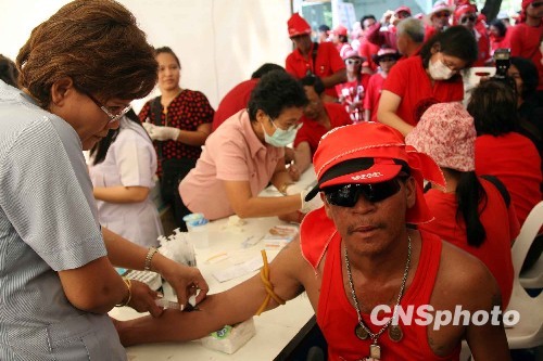 中新網(wǎng)3月16日電 據(jù)泰國《曼谷郵報》網(wǎng)站報道,泰國“反獨裁民主聯(lián)合前線”領(lǐng)導(dǎo)人納塔烏特(Nattawut Saikua)16日上午表示,紅衫軍將于當(dāng)?shù)貢r間16日下午3點到4點之間,將示威民眾的鮮血潑灑到總理府的門口,而不是原來宣布的6點。
