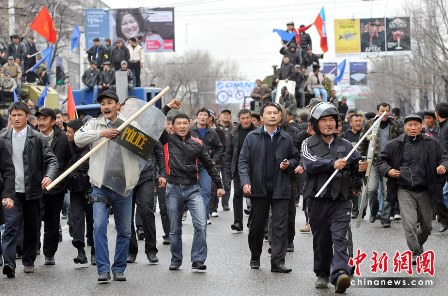 中新網4月7日電 綜合媒體報道,7日,數千名吉爾吉斯斯坦反對派示威者在首都比什凱克市中心集會游行,并與防暴警察發(fā)生沖突,逐漸演變成騷亂。目前已有至少17人死亡,逾180人受傷。反對派扣押政府高官,占領部分政府機構以及國家電視臺,并稱最終目的是要總統(tǒng)下臺,奪取國家政權。吉總統(tǒng)巴基耶夫下令全國進入緊急狀態(tài),并宣布實行宵禁。