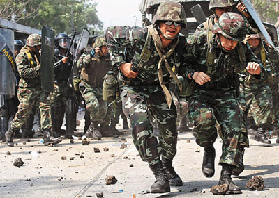 中新網(wǎng)4月10日電 據(jù)香港《文匯報(bào)》10日?qǐng)?bào)道,泰國(guó)反政府“紅衫軍”繼續(xù)不理會(huì)緊急狀態(tài)令,昨日發(fā)起大游行,沖擊被禁播的電視臺(tái),政府遂于連場(chǎng)示威中首次動(dòng)武,軍警施放催淚彈及水炮,但仍然無果,最后棄械撤退,紅衫軍成功占領(lǐng)電視臺(tái)。傍晚多個(gè)商場(chǎng)的顧客及員工被促離開,傳警方部署在6個(gè)地點(diǎn)拘捕示威領(lǐng)袖,并在一個(gè)集會(huì)地點(diǎn)清場(chǎng)。