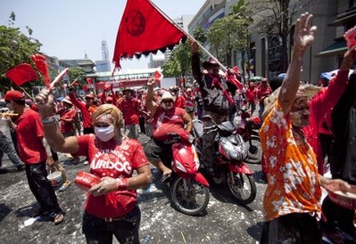 泰國政府表示正尋求與紅衫軍談判,以結束政治危機。但紅衫軍堅持阿披實須立即解散國會,若他答應,示威者將實時回家。約500名親政府黃衫軍昨日聚集于勝利紀念碑,呼吁紅衫軍回家。