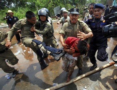 沖突發(fā)生在首都雅加達北部的丹戎不碌,該市發(fā)言人庫爾尼亞(Cucu Kurnia)稱,約2000名安保人員與600名警察用催淚彈、橡皮子彈、高壓水槍與警棍驅(qū)散示威民眾,。警方估計示威民眾約有500人。