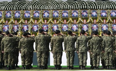 天安艦遇難官兵聯(lián)合葬禮將于25日至29日在平澤第二艦隊司令部以海軍葬方式舉行,遺體告別儀式將于29日上午10時在第二艦隊安保公園舉行。遇難官兵遺骸將于29日被安置在國立大田顯忠院聯(lián)合墓地。韓國海軍計劃在第二艦隊內(nèi)設立追思館和忠魂塔,并任命遺屬支援負責人,向遺屬提供幫助。