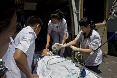 中新網(wǎng)5月1日電 據(jù)“中央社”報(bào)道,泰國(guó)反政府紅衫軍29日闖入朱拉醫(yī)院搜查,以為軍人鎮(zhèn)守大樓準(zhǔn)備驅(qū)離行動(dòng),紅衫軍領(lǐng)袖30日致歉并清出部分路障供救護(hù)車與病人進(jìn)出,但已有逾1000名病人轉(zhuǎn)院。