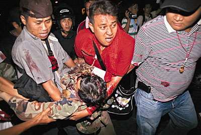 中新網(wǎng)5月14日電 據(jù)香港《文匯報》14日報道,泰國局勢再趨緊張,反政府紅衫軍拒絕結(jié)束示威,總理阿披實收回11月大選的和解提議。軍方昨(13日)晚出動裝甲車狙擊手封鎖紅衫軍示威地點,并截水截電,圖逼走示威者。紅衫軍營地之后傳出連串槍聲和至少4下爆炸聲,據(jù)報造成至少1死20傷,其中支持紅衫軍的陸軍少將卡迪亞頭部中槍昏迷。當(dāng)局宣布擴大在中部和東北部17個府實施緊急事態(tài)法。