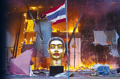 中新網(wǎng)5月20日電 據(jù)香港《文匯報(bào)》報(bào)道,泰國軍方19日清場(chǎng),希望將陷入內(nèi)戰(zhàn)邊緣的曼谷拯救出來,雖然紅衫軍節(jié)節(jié)敗退,但有激進(jìn)分子未肯罷休,四處放火,電視臺(tái)、股票交易所、電力公司、幾間銀行、商場(chǎng)戲院都遭殃,商場(chǎng)和便利店亦成為搶掠目標(biāo)。據(jù)報(bào)曼谷有27處地方起火,泰國最大的商場(chǎng)Central World、Siam Square和Siam Paragon三大購物中心被縱火,其中Central World燒通頂,據(jù)報(bào)快將倒塌。