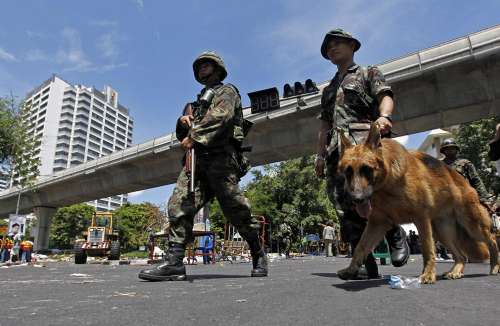 由于軍方早前在四季酒店內(nèi)曾經(jīng)發(fā)現(xiàn)爆炸品,軍隊帶同犬只搜索紅衫軍有沒有留下危險物品。泰國軍方表示,恢復(fù)曼谷市面秩序的行動于下午4時結(jié)束,之后清掃街道等工作將移交給曼谷市當(dāng)局。此外,軍隊和民眾21日早上開始對除拉差巴頌地區(qū)以外的紅衫軍集會地區(qū)的街道進(jìn)行清掃,拆除路障。