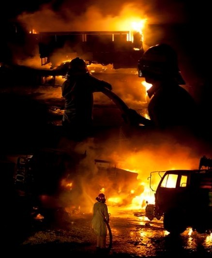 武裝分子先使用槍支及手榴彈等武器,對(duì)車隊(duì)開火,打死7人,造成另外7人受傷。隨后,武裝分子縱火燒毀車輛,一共有10多輛車被付之一炬。目擊者稱,大約有20個(gè)集裝箱起火燃燒。由于輪胎燃燒,油罐起火,現(xiàn)場發(fā)生一系列爆炸。