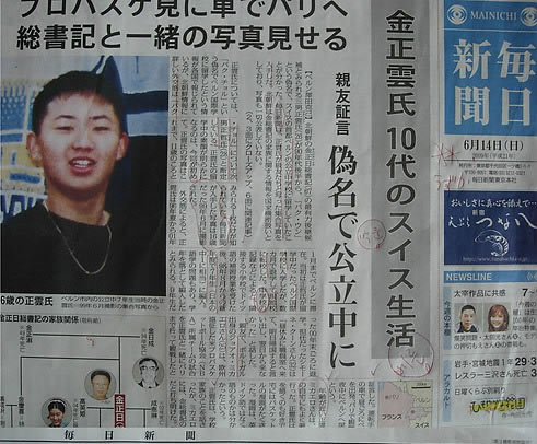 日本《每日新聞》14日在頭版中報道稱,該照片是金正云化名為“樸云”在瑞士波恩公立中學就讀7年級時,與同班同學一起拍的照片。照片中的金正云一頭短發(fā)、身穿黑色運動T恤、胸前戴著金項鏈。