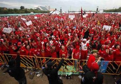 四月份泰國(guó)發(fā)生的長(zhǎng)達(dá)兩星期的反政府示威活動(dòng)導(dǎo)致一百多人受傷,兩人死亡。 那場(chǎng)大示威還迫使本來要在泰國(guó)舉行的東盟峰會(huì)取消,導(dǎo)致首都曼谷部分地區(qū)陷于癱瘓。泰國(guó)當(dāng)局因此下令曼谷進(jìn)入緊急狀態(tài),還對(duì)14名示威領(lǐng)導(dǎo)人發(fā)出逮捕令,其中包括流亡的前總理他信。