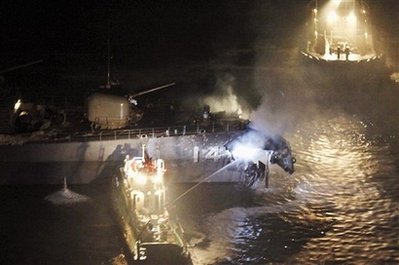 一九八一年開始服役的KURAMA號,隸屬日本海上自衛(wèi)隊(duì)第二艦群,全長一百五十九米,寬十七點(diǎn)五米,排水量五千二百噸,最大時(shí)速三十一海里,搭乘三架反潛直升機(jī)。在剛剛于十月二十五日結(jié)束的日本海上自衛(wèi)隊(duì)觀艦式(相當(dāng)于海軍閱兵式)上,該船作為“觀閱艦”為日本副首相菅直人的搭乘艦。事發(fā)時(shí),KURAMA號正處于結(jié)束觀艦式后返回佐世保基地的途中。艦上載有一百五、六十名自衛(wèi)隊(duì)隊(duì)員。而與其相撞的韓國集裝箱船“CARINA STAR”號全長一百二十七米,寬二十米,事發(fā)時(shí)正處于自韓國釜山前往日本大阪的途中。