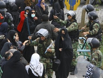 反對派領(lǐng)導(dǎo)人穆薩維與卡魯比敦促支持者們走上街頭,抗議總統(tǒng)艾哈邁迪內(nèi)賈德的政府。目擊者稱:“警方與幾百名示威人群發(fā)生沖突。示威者高喊‘打倒獨(dú)裁者!’。警方用警棍驅(qū)散示威人群!绷硪幻繐粽叻Q,警方向人群發(fā)射了催淚彈。