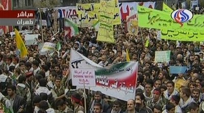 示威人群包圍了原美國大使館舊址,高呼“打倒美國!”、“以色列去死!”等口號。示威人群還把寫著“山姆大叔”標(biāo)志的海報(bào)撕毀,并高喊“我們血管中流淌的鮮血,是我們奉獻(xiàn)給偉大領(lǐng)袖的禮物。”
