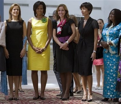 中新網(wǎng)7月11日電 G8領(lǐng)袖忙著討論世界大事,第一夫人們也忙得不得了。據(jù)臺灣東森新聞網(wǎng)報道,美國第一夫人米歇爾與奧巴馬一同訪問俄羅斯時,手上的名牌鱷魚價格昂貴,顯然改走起奢華風(fēng),連帶英國首相夫人莎拉也受到感染,在G8高峰會上,6小時換3套衣服。