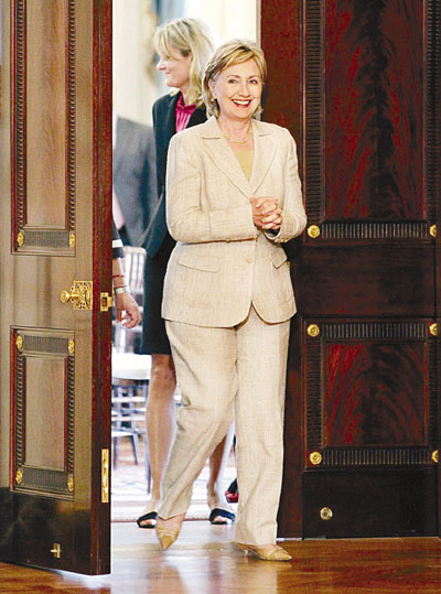 據(jù)香港《文匯報》報道,希拉里前日在國務院與加拿大和墨西哥外交部長會面后,召開記者會。傳媒近日又再傳出兩人關系轉差,就有關問題,希拉里回應說:“對于我與白宮的工作關系,以及和奧巴馬的私人關系,我感到非常受尊重和正面!弊詮南@锸种夤钦酆螅枰邮茴l密物理治療,所以被迫缺席多個重要外交政策會議,包括未能伴隨奧巴馬前往八國集團(G8)峰會和訪問俄羅斯。