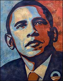 費爾雷創(chuàng)作的奧巴馬肖像與以往總統(tǒng)侯選人的競選海報風格大不相同,最初曾以“希望”命名,后來,改稱“變革和投票”。