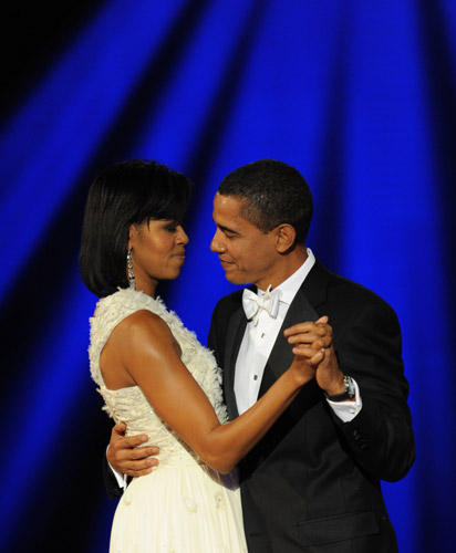美國(guó)第一位非洲裔總統(tǒng)和身穿白色禮服的夫人米歇爾,伴隨著黑人歌星碧昂斯演唱由埃塔·詹姆斯譜寫的靈魂古典歌曲“最終”,跳了第一支舞。曲終舞停后,碧昂斯向總統(tǒng)夫婦獻(xiàn)上一個(gè)飛吻,在場(chǎng)的人群高喊奧巴馬的名字。