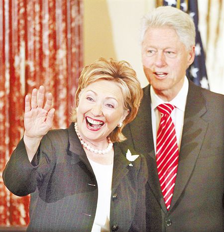 中新網(wǎng)2月4日電 美國(guó)新任國(guó)務(wù)卿希拉里2日在華府美國(guó)國(guó)務(wù)院宣誓就職,她致詞時(shí)刻意消遣自己和丈夫克林頓說,“我要好好感謝他,這輩子帶給我各式各樣的經(jīng)驗(yàn)”,而說到”各式各樣“時(shí)加重語氣,似乎暗指克林頓當(dāng)年的風(fēng)流韻事,引來哄堂大笑。