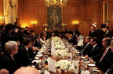 據(jù)《衛(wèi)報》4月2日披露,作為東道主,英國首相布朗坐在了橢圓形宴會桌主人應該坐的位置上,中華人民共和國主席胡錦濤坐在他右側(cè),印尼總統(tǒng)蘇西洛坐在布朗的左側(cè),約旦國王阿卜杜拉二世坐在布朗的正對面。據(jù)悉,布朗將私下會晤阿卜杜拉,兩人將就兩國之間的軍火交易進行商談。法國總統(tǒng)薩科齊被安排坐在胡錦濤的右側(cè)。俄羅斯總統(tǒng)梅德韋杰夫被安排坐在墨西哥總統(tǒng)卡爾德龍和土耳其總理埃爾多安之間。