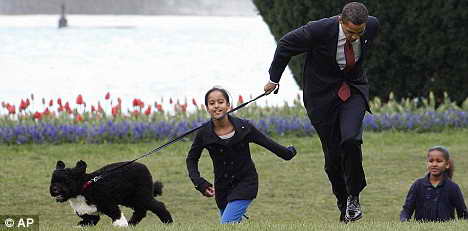 據(jù)英國《每日郵報》報道,如果奧巴馬認(rèn)為競選美國總統(tǒng)是一件很辛苦的事,那他現(xiàn)在可能已在著手應(yīng)對一項更為艱難的挑戰(zhàn)。在“第一狗”來到白宮數(shù)小時后,奧巴馬就因為趕不上它的步伐而差點(diǎn)摔倒,這使他的兩個女兒感到很好笑。