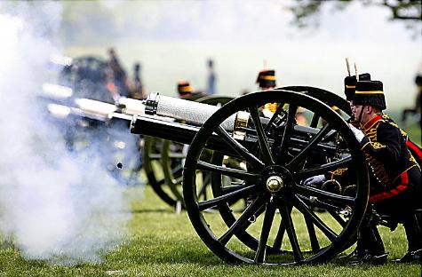為慶祝英國(guó)女王伊麗莎白二世83歲的生日,英國(guó)皇家騎兵炮兵連在倫敦海德公園鳴放41響禮炮,來為女王慶生。這一天女王和丈夫菲利普親王待在溫莎城堡,沒有公開的行程。
