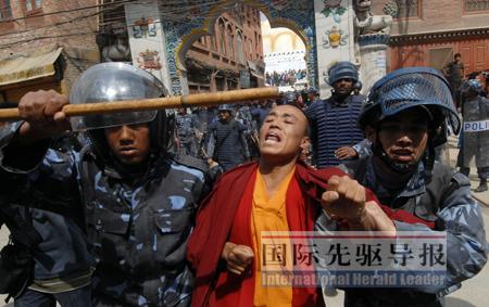 次仁們算是幸運的!秶H先驅(qū)導(dǎo)報》記者在現(xiàn)場看到,被煽動沖在前面和尼泊爾警方對峙、沖突的多是青少年,而那些“藏獨”骨干則在現(xiàn)場附近拿著手機指揮、清點人頭。