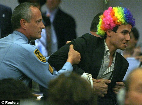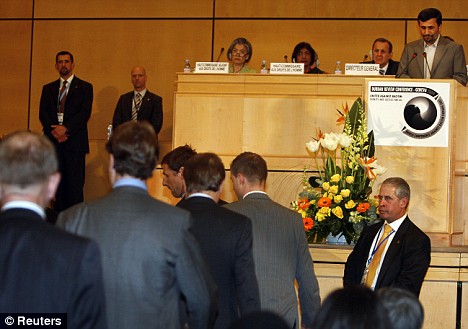 據(jù)美聯(lián)社報道,當(dāng)伊朗總統(tǒng)內(nèi)賈德20日在瑞士日內(nèi)瓦聯(lián)合國反種族主義大會發(fā)表批評以色列的言論時,數(shù)十位西方外交官中途退場,兩名化裝成小丑的示威者向內(nèi)賈德投擲假鼻子。會議從一開始就很混亂。當(dāng)內(nèi)賈德開始講演時,兩名戴著彩色假發(fā)的示威者向他扔去了小丑的紅色假鼻子。來自法國的一個猶太學(xué)生組織稱,它試圖向人們傳達(dá)“會議只不過是一場假面舞會”的信息。一名示威者大喊:“你是一個種族主義者!!彼土硪幻就唠S后被安保人員帶離現(xiàn)場。內(nèi)賈德回應(yīng)稱:“我請所有尊敬的貴賓原諒這些無知的人。他們沒有得到足夠的信息!
