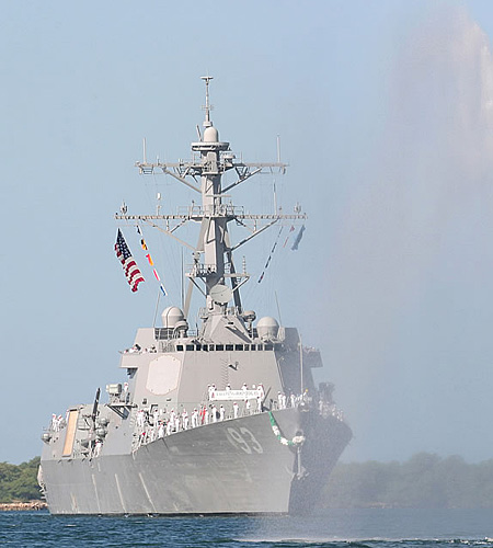 “鐘云”號(hào)是美國海軍史上第一艘以華人名字命名的軍艦。這艘DDG93驅(qū)逐艦是為紀(jì)念二戰(zhàn)時(shí)擊退日本神風(fēng)敢死隊(duì)的華裔海軍少將鐘云(Gordon Paie'a Chung-Hoon)而命名,配有“宙斯盾”作戰(zhàn)系統(tǒng),造價(jià)13億美元,是目前世界海軍最先進(jìn)的驅(qū)逐艦之一。